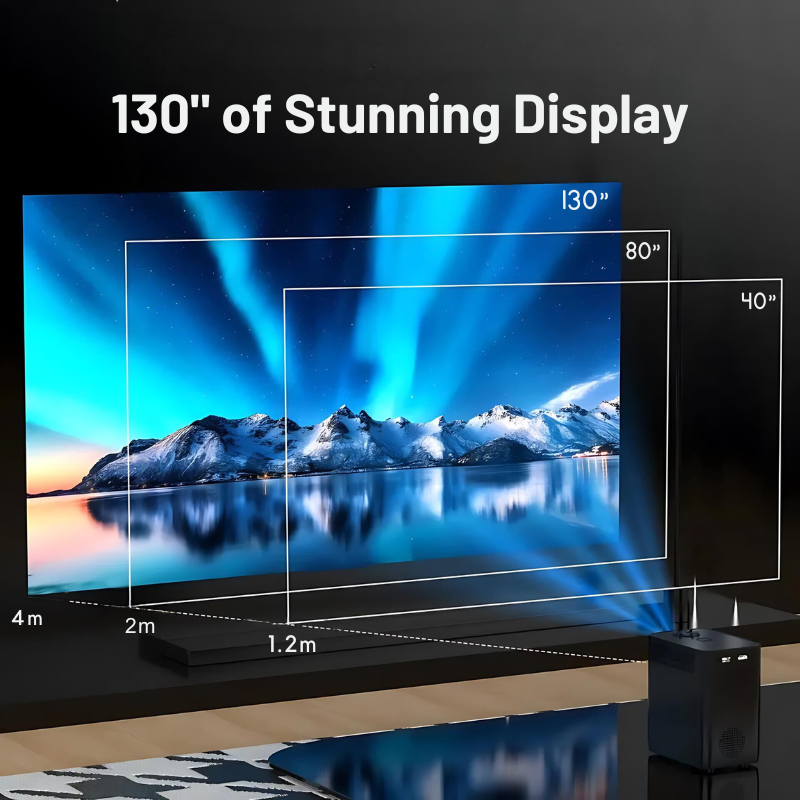 Expand your horizons with up to 130" of stunning display. Experience cinema immersion from the comfort of your own space.